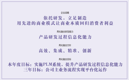 在信息化條件下,兩化融合是企業(yè)獲得可持續(xù)競爭優(yōu)勢的必由之路,是提高企業(yè)經(jīng)濟(jì)效益的有效手段,關(guān)系到企業(yè)的研發(fā)設(shè)計高效管控能力、生產(chǎn)過程管控能力以及品牌服務(wù)全生命周期管控能力,涉及到企業(yè)管理和運營的方方面面。