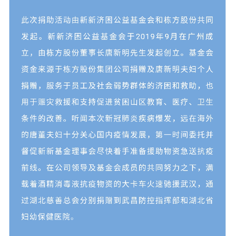 我們心在一起丨棟方股份聯(lián)合新新公益基金會援鄂抗疫紀(jì)實