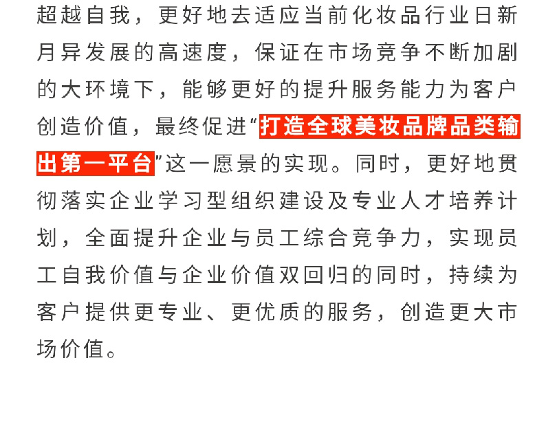 企業(yè)愿景: 打造全球美妝品牌品類輸出第一服務(wù)平臺(tái)